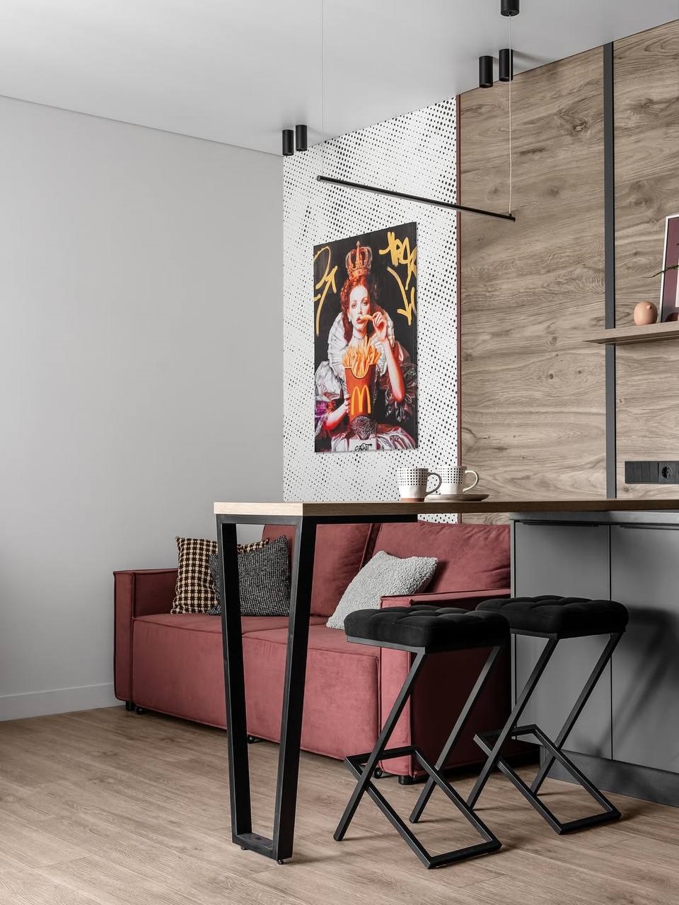 Этот интерьер создавался для долгосрочной аренды и ориентирован на аудиторию 25–35 лет: одного человека или молодую пару. Пространство получилось сдержанным, но с «изюминкой», которая выделяет его среди типовых квартир.