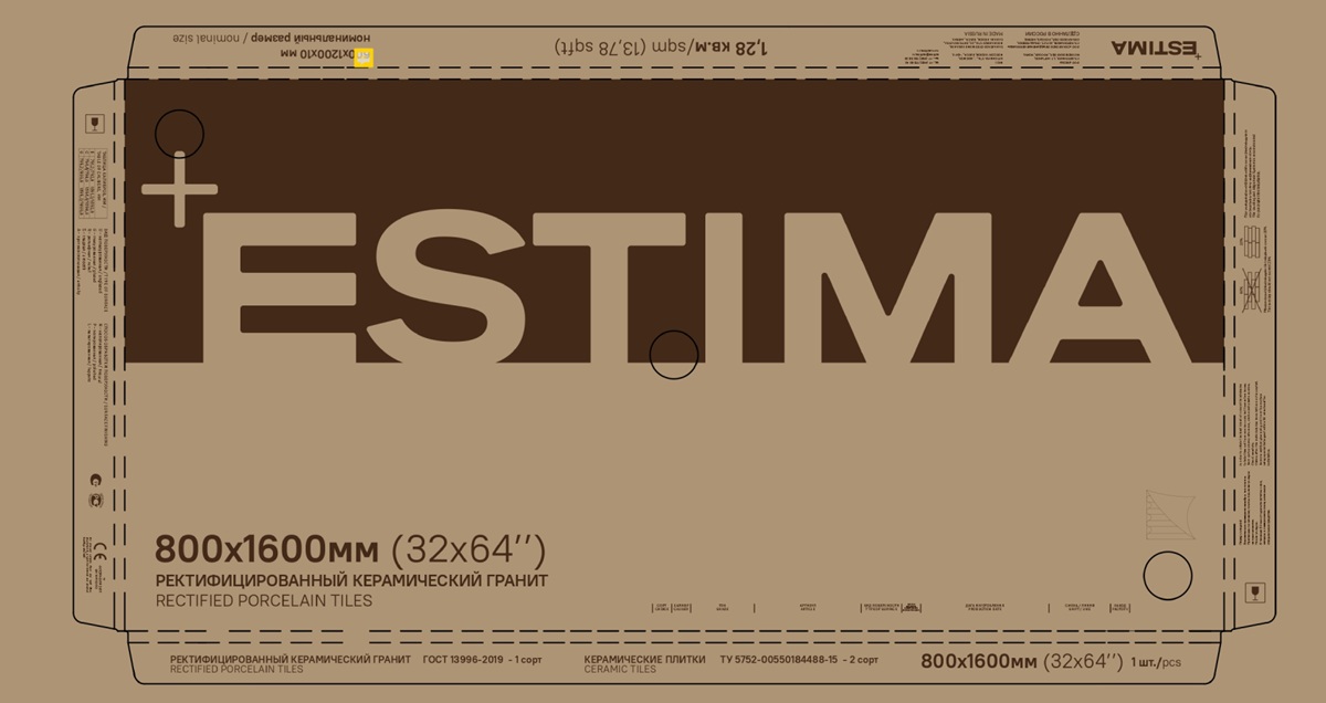Два последних года мы работали над рестайлингом фирменного стиля, завершив обновление сменой упаковки. Теперь она соответствует последним эко-стандартам и стала ещё удобнее. Уже сегодня часть крупноформатной плитки поставляется в новых коробках. Совсем скоро их будут использовать для всей продукции Estima.